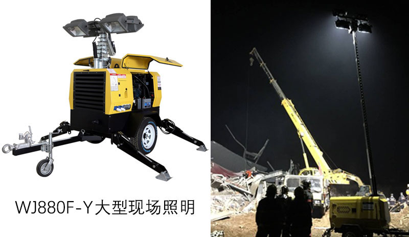 也可提供超大范圍晝夜連續(xù)作業(yè)的大型照明燈塔,WJ880F-Y全方位移動(dòng)照明燈塔, 采用4 個(gè)1000 W 高效節(jié)能燈頭,照明亮度高,覆蓋范圍大.實(shí)現(xiàn)任意升降調(diào)節(jié),最大升可起高度為10 米,燈光覆蓋整個(gè)工作現(xiàn)場以確保各種救援場景的照明保障能力。
