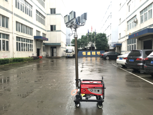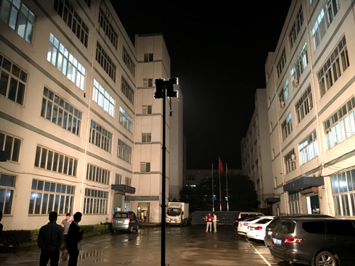 經(jīng)過恒盛照明企業(yè)改成LED光源的SFW6110全方位自動升降泛光工作燈,光源選用了著名品牌LED芯片,色溫為5500K,正白光,防眩設計。效果怎么樣呢?為此,研發(fā)中心工作人員在一個雨后的夜晚在公司大院進行了測試。