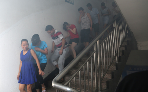 火場(chǎng)逃生演習(xí)要點(diǎn):必需要用打濕的毛巾捂住口鼻,彎腰或者匍匐沿墻邊走。這樣就不會(huì)在濃煙吸入有害煙氣中毒或被火灼傷,彎腰或者匍匐是因?yàn)橛泻Χ練舛际峭仙�,最下層是生命的真空區(qū)。沿墻邊走就不會(huì)在火場(chǎng)迷失方向,有墻就有門,總會(huì)找到出口,安全退出。