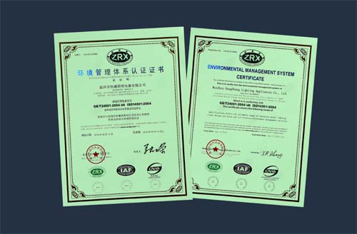 日前,恒盛照明企業(yè)通過了GB/T24001-2004 idt ISO14001:2004即環(huán)境管理體系認證。它要求恒盛照明企業(yè)對產(chǎn)品設(shè)計、生產(chǎn)、使用、報廢和回收全過程中影響環(huán)境的因素加以控制。ISO14000基于“環(huán)境方針”應(yīng)體現(xiàn)生命周期思想的思路。用以評價產(chǎn)品在每個生產(chǎn)階段對環(huán)境影響的大小,使組織恒盛照明企業(yè)能夠加以分析改進。