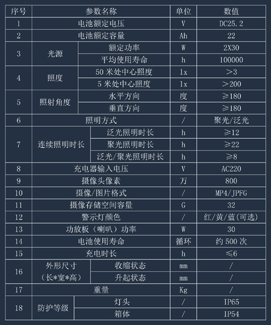 四、FW6128多功能移動(dòng)照明系統(tǒng)參數(shù)